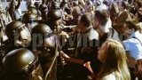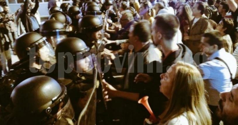 Протестиращите замеряли полицията с консервени кутии и пластмасови бутилки с вода. Някои от тях успели да нахлуят в кабинета на президента Георге Иванов и го опустошили напълно.
