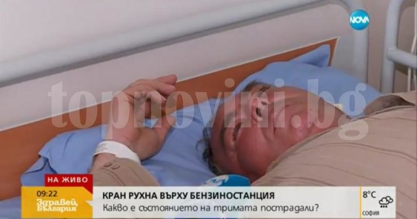 Мъжът заяви, че е скочил от около 3-4 метра височина точно преди кранът да падне върху козирката на бензиностанцията. По чудо е оцелял и дори се е разминал без сериозни наранявания.