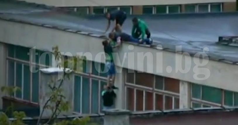 Деца се катерят и висят от покриви на високи сгради в Добрич