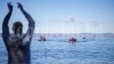 Десетки активисти демонстрираха несъгласието си със споразумението между Брюксел и Анкара, като скочиха от доковете в знак на протест срещу връщането на мигрантите.