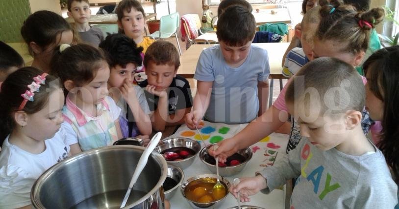 Децата се запознават с традициите и обичаите, свързани с един от най-светлите християнски празници Великден, показват им се различни техники за боядисване на яйца и те имат възможността да боядисат яйца с традиционна и мраморна техники. Заниманията във Великденската работилница ще се провеждат до края на седмицата.
