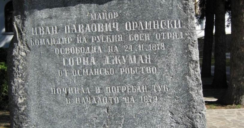 От 11.00 часа в храм „Въведение Богородично“ ще бъдат положени цветя пред паметната плоча на майор Иван Павлович Орлински, която се намира в двора на църквата.