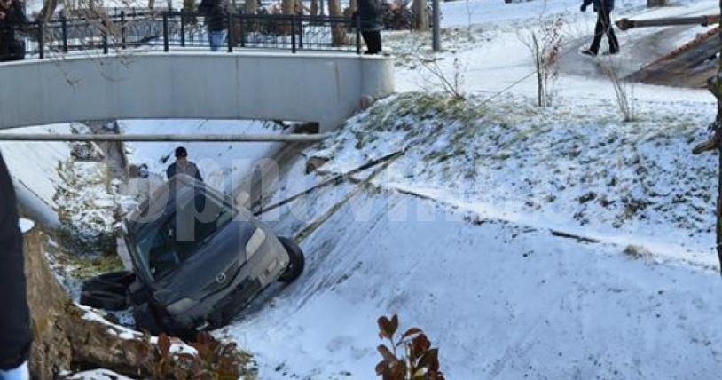 Наши читатели, предоставили ни снимката, обясниха, че са се натъкнали на необичайната гледка в неделя. Предполагат, че инцидентът е станал предната нощ. В обедните часове на неделния ден колата е била изтеглена.