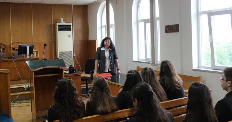 Последният час за учебната година започна в 10.30 часа в сградата на съдебната палата. Съдиите Нели Батанова и Светлин Стефанов посрещнаха своите ученици от ІХ Б клас от СУ ”Йоан Екзарх Български” гр.Шумен в зала 9 на Окръжен съд – Шумен. В края на часа те получиха своите удостоверения, а на техният учител Ася Борисова бе връчен плакет за участието на училището им в образователната програма.