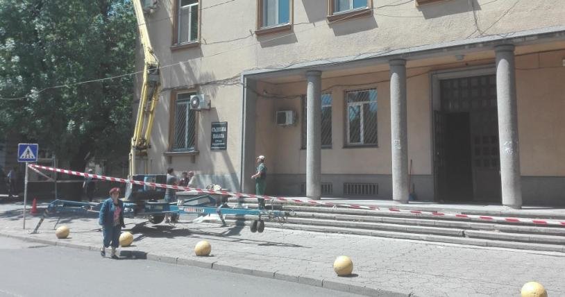 След като сградата на Съдебната палата в Хасково от няколко месеца се бе превърнала в потенциален убиец, днес работници започнаха частичен ремонт. От рано сутринта работник премахва опасни парчета мазилка и замазва фасадата около покрива. От сутринта пък част от сградата на Темида е отцепена с лента, а движението за пешеходци около сградата е забранено.