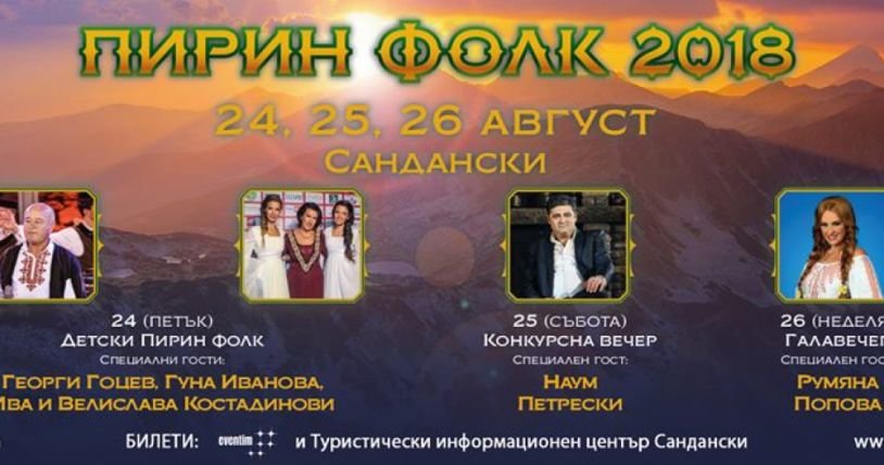26-тото издание на „Пирин Фолк“ в Сандански, освен много красиви песни, тази година ще предложи на любителите на фолклора и богата танцова програма. На сцената на Летния театър в Сандански в рамките на три дни ще се изявят осем танцови формации.