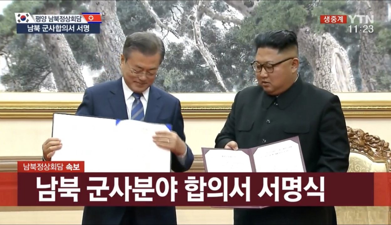 По-късно министрите на отбраната на двете страни подписаха военно споразумение за понижаване на напрежението на Корейския полуостров, посочва БТА. На обща пресконференция Мун Дже Ин каза, че Ким се е съгласил да се предприемат конкретни стъпки към ядрено разоръжаване и севернокорейските ядрени инсталации да се демонтират за постоянно в присъствието на международни експерти.