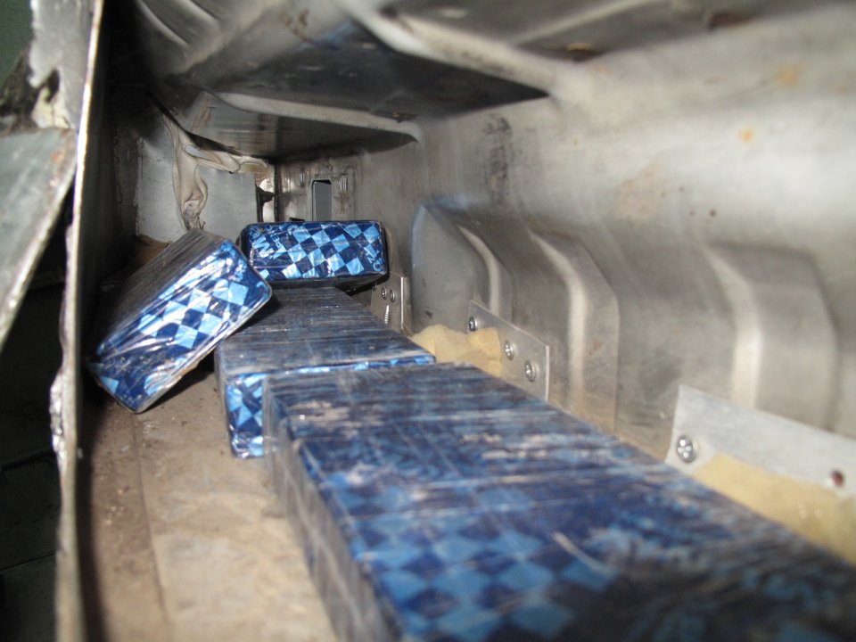 В областта на багажника е установен добре замаскиран тайник зад регистрационния номер на колата. Под ръководството на дежурен разследващ полицай от ГПУ Видин и в присъствието на шофьора на колата, от тайника са извадени 10 правоъгълни пакета, обвити с индиго и облепени с тиксо. Общото тегло на извадените пакети е 5090 грама. Съдържанието на пакетите е проверено с полеви наркотест, който е реагирал на хероин.