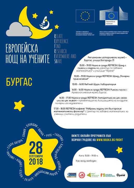 ПРОГРАМА ЗА ЕВРОПЕЙСКАТА НОЩ НА УЧЕНИТЕ В БУРГАС