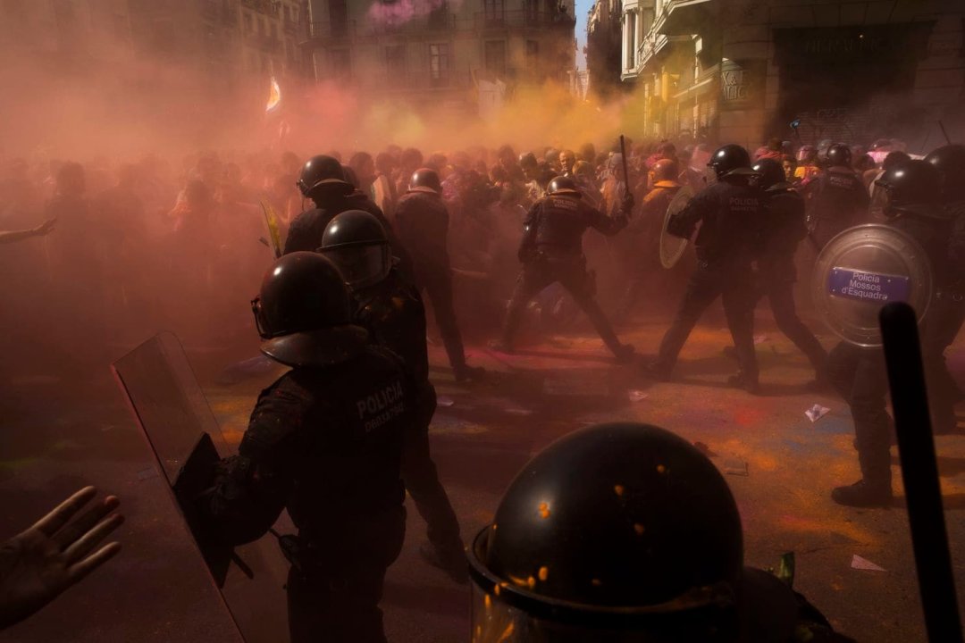 Сблъсъците избухнаха, след като местната полиция се намеси, за да образува бариера, когато сепаратистите нападнаха мъж, който беше част от друг поход на хора в подкрепа на испанската полиция, настоявайки за повишаване на заплатите. Офицерите използваха палки, за да отблъснат насрещните сепаратисти и да раздалечат групите.
