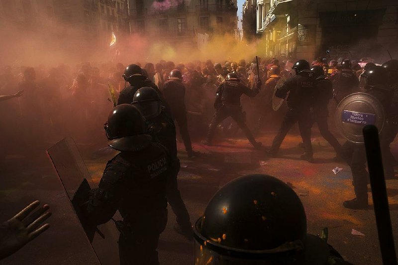 Сепаратистите се сблъскаха няколко пъти с полицията, замеряха ги с боя, хвърляха и бомбички, преди органите на реда да се намесят в центъра на Барселона. Полицията използва палки, за да потуши сблъсъците.
