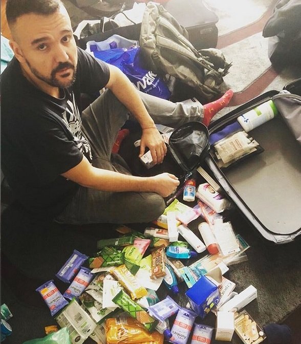 На един от кадрите певецът шеговито добавям „И малко лекарства да си взема“, като е подредил флакони и блистери с болкоуспокояващи, репеленти против насекоми, активен въглен – с една дума, аптечка за първа помощ в екзотична държава. На друг кадър пък е запечатал как се е запасил със суха храна – вафли, солети, ядки и много мокри кърпички и дезинфекциращ гел. Ампов получи и десетки съвети от почитателите си в никакъв случай да не пие вода, която не в в бутилка, дори да е в кафето му. Както и да не се доверява на храна.