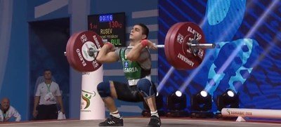 Със 108 кг в изхвърлянето 17-годишният българин премина световния стандарт и записа името си като първия световен рекордьор при по-младите. Русев стартира с успех със 103 кг, после се справи и със 108 кг, но при задържането на щангата до признаването на опита от съдиите получи болки и това принуди треньорския щаб да се откаже от трети опит за да не провокира по-тежка контузия и за да може да продължи и изтласкването. При трима съперници с „нули“, тези 108 кг наредиха Русев седми в първото движение, информираха от пресцентъра на МОК.