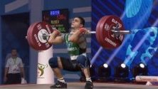 В изтласкването българинът започна с успешни 130 кг, след това премина и през 135 кг, за да триумфира като нов световен рекордьор при младите и в това движение със 140 кг. Това му осигури притежанието и на върховото постижение на планетата в двубоя с 248 кг (с 12 кг над стандарта), което го нареди шести в крайното класиране на категорията в Ашхабад.