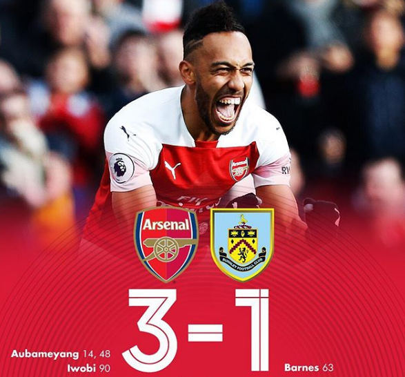 Обамеянг е голмайстор в първенството с 12 попадения и три асистенции. След победата си „Арсенал“ остава на петата позиция във временно класиране с актив от 37 точки, а „Бърнли“ остава в „зоната на изпадащите“ с 12 точки и 18-а позиция