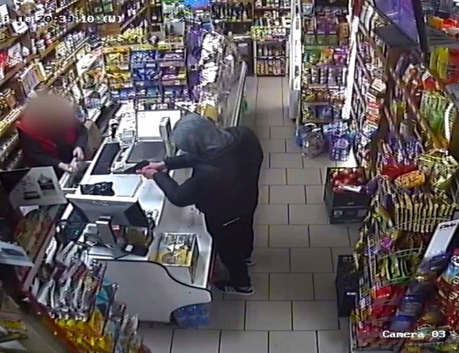 Крадецът е на възраст около 24 години, висок е около 165 см., със слабо телосложение. Бил е облечен с шушляково яке, сив анорак, черна долница на анцунг и тъмни маратонки с три бели ленти отстрани. Мъжът е имал съучастник, които минути преди това влиза в магазина и пазарува. Той е облечен със зелено яке, носи шапка на главата, обут е със сиви обувки и носи раница. На видеото се вижда как младежът заплашва продавачката с пистолет. В края на клипа се вижда как друг човек внезапно изкача зад касата и прогонва мъжа с пистолета.