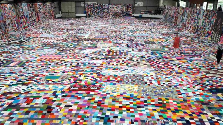 Над 1000 плетачки от 32 държави, включително от България, подобриха рекорда на Гинес, като изработиха одеало с размер 1995 кв. м.