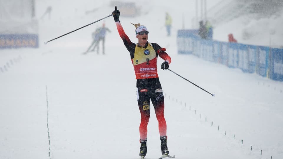 Норвежецът Йоханес Тингнес Бьо спечели старта от световната купа по биатлон в преследването на 12.5 км в Оберхоф. Той използва по един допълнителен патрон в три от 4-те стрелби, но с феноменално бягане натрупа аванс от 15 секунди, който задържа до финала. Втори финишира Арнд Пайфер от Германия, трети Лукас Хофер от Италия.