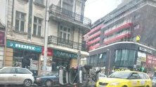 Лек автомобил се е преобърнал на булевард „Мадрид“ в София.