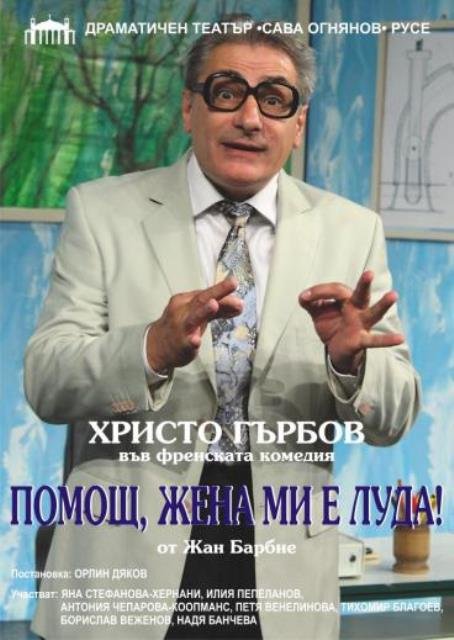 "Помощ, жена ми е луда" е една от популярните комедии на съвременния френски драматург Жан Барбие, представена за първи път в парижкия театър „Театр дьо Нувоте”, където се е играла няколко сезона.