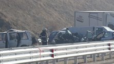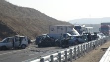 Много тежка верижна катастрофа е станала на АМ "Струма" в участъка между Сандански и село Дамяница, в посока София. Един човек е загинал, а пострадалите са между 13. Те са настанени в болниците в Сандански, Петрич и Благоевград. Някои от тях са с по-леки травми, но има и такива с по-тежки наранявания и в момента се оперират.