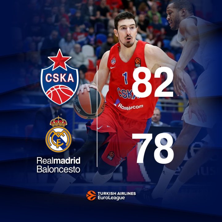 Руският ЦСКА Москва победи защитаващия титлата си Реал Мадрид с 82:78 в дербито от 22-и кръг на Евролигата по баскетбол за мъже. Така двата тима се изравниха на второто място в класирането с по 17 победи и 5 загуби. За победителите се отличи Нандо Де Коло с 21 точки, Кори Хигинс добави 15, а Даниел Хакет отбеляза 14 точки. Антъни Рандолф беше най-резултатен за Реал Мадрид с 20 точки, а Густаво Айон записа 11 точки и 6 борби.