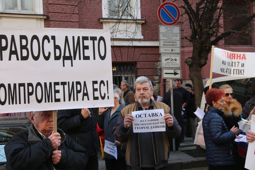 Пред министерството те излязоха с лозунги: "Стоп на произвола на ЧСИ и пълна ревизия на делата им", "Незабавна проверка на всички заповедни производства".