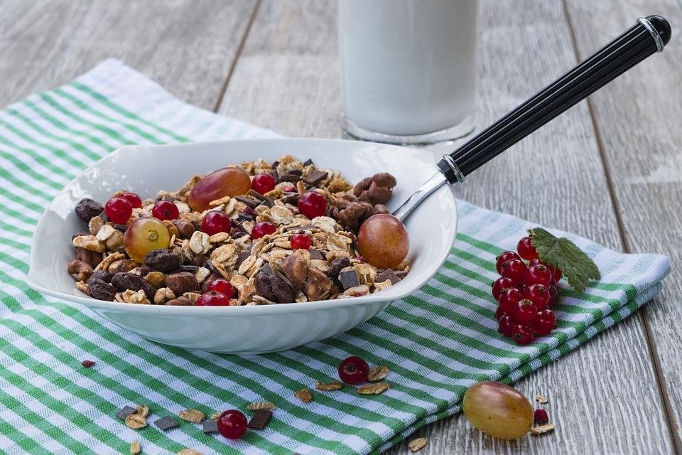 Представлява пълнозърнест овес, който се приготвя с хидрогенирани мазнини и в повечето случаи, съдържат захари. Една купичка мюсли с мляко може да надвиши 600 калории.