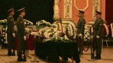 Централният военен клуб се изпълни с политици, военни, журналисти, историци и стотици граждани заради поклонението пред тленните останки на собственика на Агенция "Фокус" Красимир Узунов.