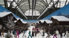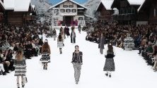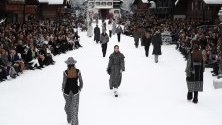 Моделите стояха мълчаливи на модния подиум в Гранд Палас в Париж, който беше превърнат в красива снежна алпийска приказка, а много от модните икони се бяха облекли в черно.