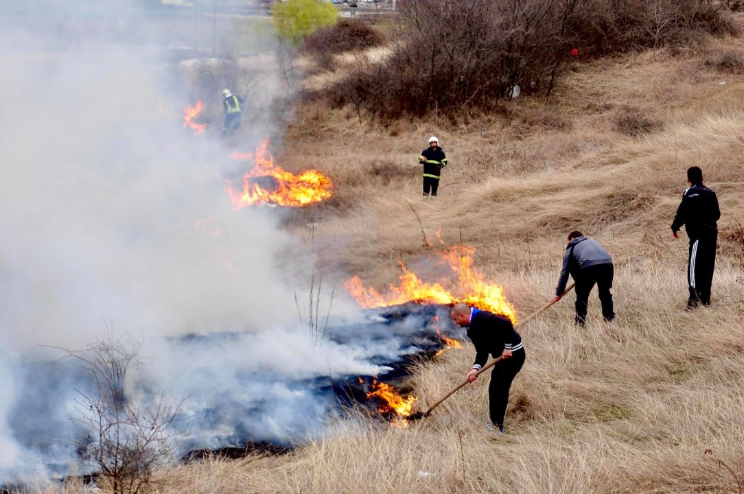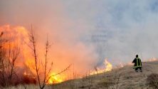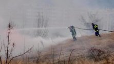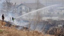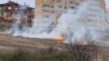 Пожар избухна в близост до жилищни сгради край благоевградския квартал "Ален мак", под хотел "Езерец". Пламъците се разразили преди около час.