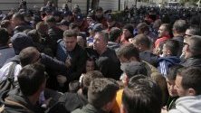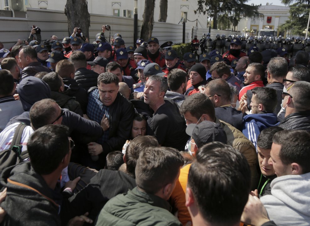 По-рано протестиращите се опитаха да пробият полицейския кордон, по който хвърляха димни бомби и твърди предмети, крещейки "Рама, върви си" и "Парламент на престъпници"...