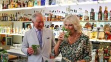 В един от частните ресторанти, които посетиха в рамките на проявата, принц Чарлз и Камила смелиха захарна тръстика за сок и приготвиха коктейли мохито.