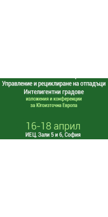 Изложенията и конференциите ЕЕ и ВЕИ (енергийна ефективност и възобновяема енергия), Save the Planet (управление и рециклиране на отпадъци) и Smart Cities (интелигентни градове) ще се организират от Виа Експо в периода 16-18 април, Зали 5 и 6, ИЕЦ, София. Всички, които се интересуват от тези теми, могат да се регистрират на https://viaexpo.com/bg/ за безплатен вход за изложенията и участие в съпътстващата програма.