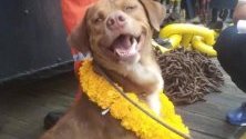 Не е ясно как кучето се е озовало на стотици километри от брега. Единият от вариантите е да е паднало във водата от риболовен кораб.