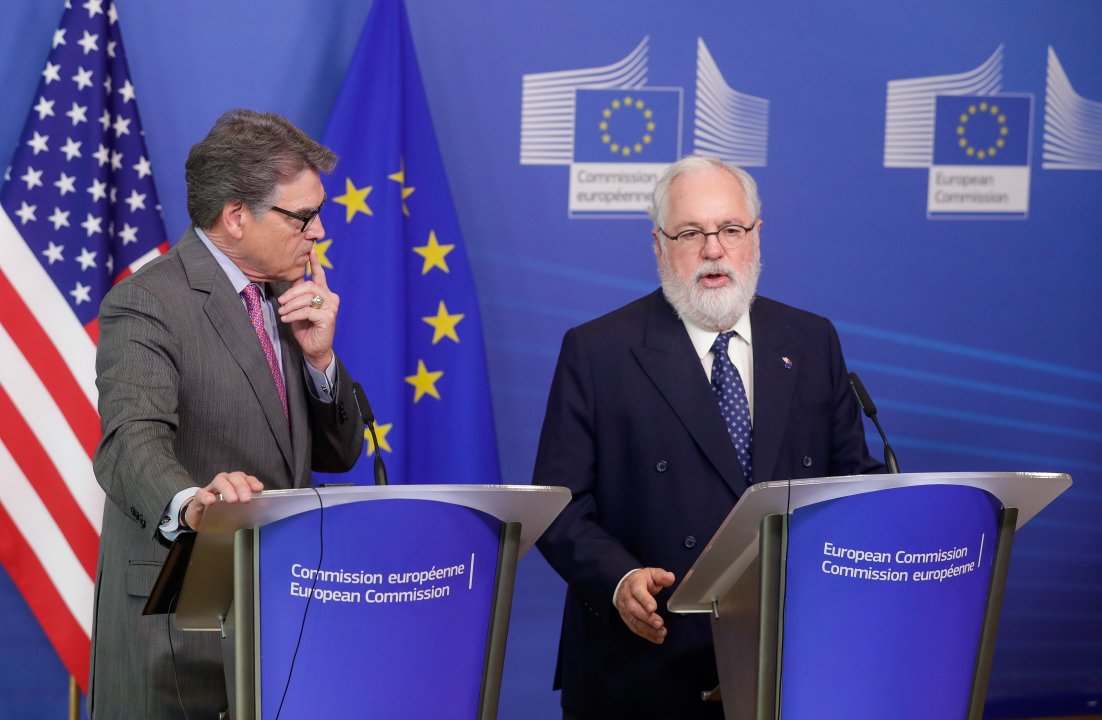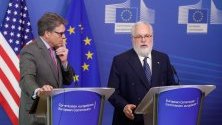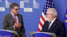 Три терминала за втечнен газ ще заработят до края на годината в ЕС, съобщи еврокомисарят по енергетиката и климата Мигел Ариас Канете на съвместен брифинг с американския секретар по енергетиката Рик Пери.