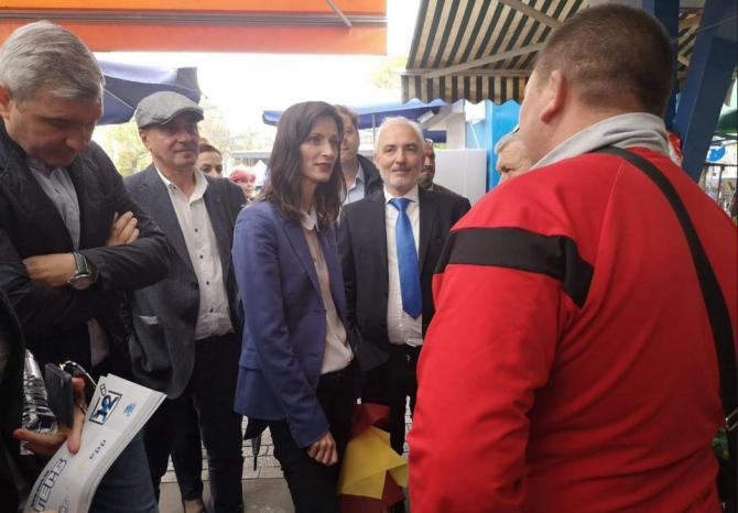 Водачът на листата на ГЕРБ и СДС Мария Габриел посети Женския пазар.