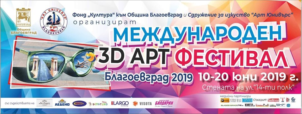 Уникални 3D и 4D картини ще „оживеят“ в Благоевград по време на Международен арт фестивал в Благоевград. Събитието ще се проведе от 10 до 20 юни в областния център. Стената на улица "14-ти полк" и тротоара под нея ще бъдат изрисувани с 3D и 4D картини, които ще пресъздадат гледки от Благоевград, както и културни обекти.