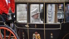 Кралската двойка отиде до мястото с карета, теглена от коне заедно с Камила, херцогинята Корнуол и Катрин, херцогинята Кеймбридж.