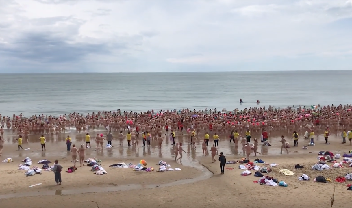 В Ирландия около 1800 голи жени участваха в благотворителна кампания за борба с рака.