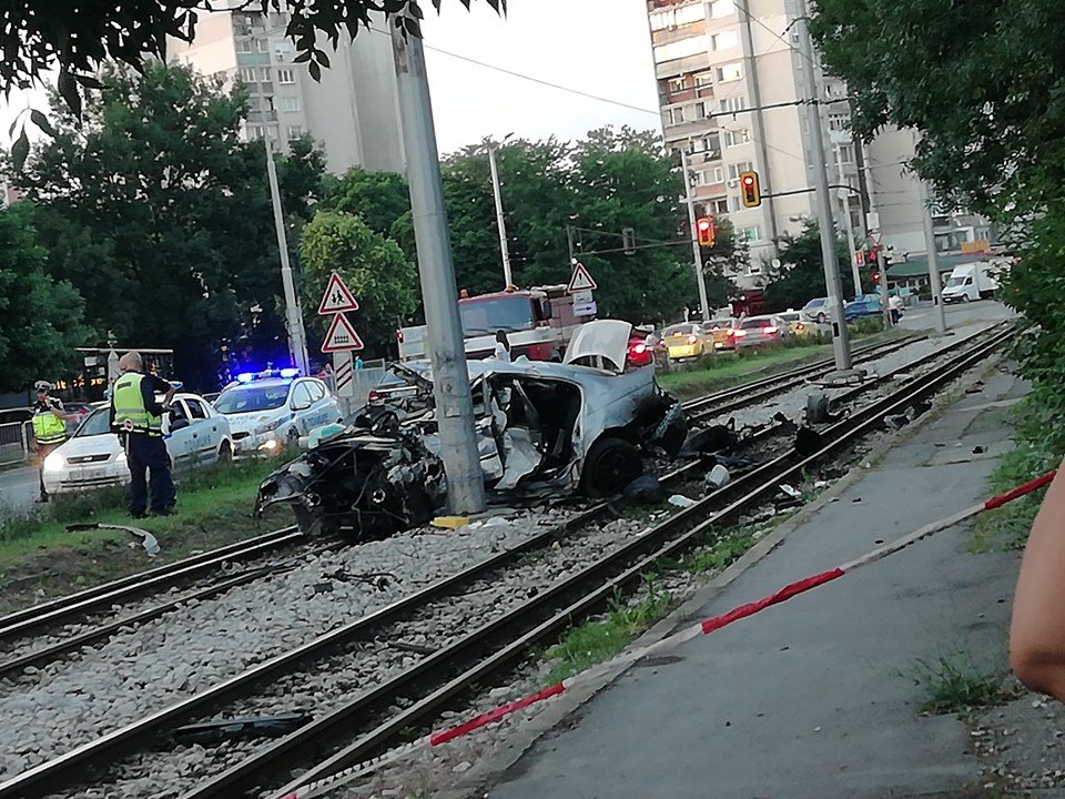 Сигнал за катастрофата е подаден към 20,30 ч. От МВР съобщиха, че шофьорка, движеща се с превишена скорост, е предизвикала верижна катастрофа с автомобила си. Очевидци съобщават, че жената е блъснала няколко коли, след което е уцелила стълб и колата е изхвърчала в трамвайните линии.