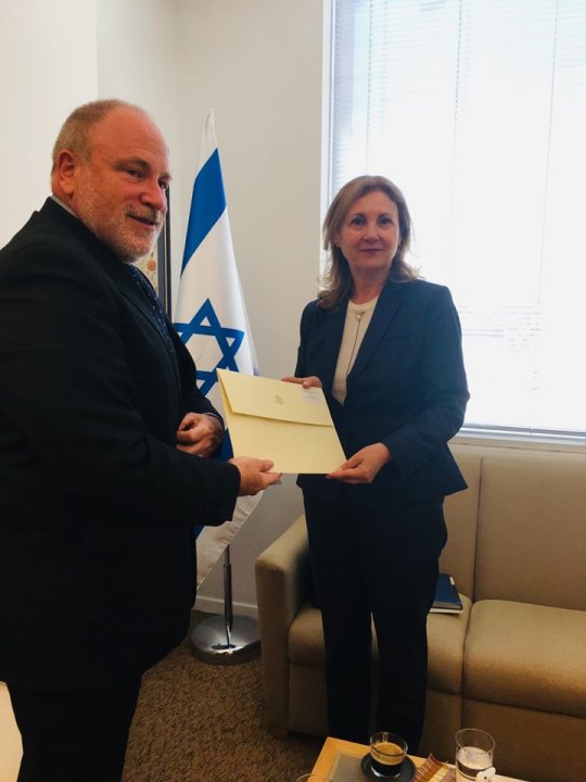 "Днес връчих копията на акредитивните ми писма в Министерството на външните работи на Израел на г-н Мерон Рубен, директор на Държавния протокол. По време на срещата с него обсъдихме и предстоящата церемония по официалното връчване на акредитивните писма".