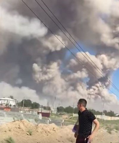 Взрив избухна днес в склад с боеприпаси във военна база в казастанския град Арис, последван от пожар и нови експлозии, предаде ТАСС.