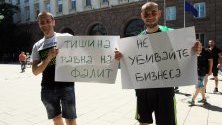 Протестът е организиран от Българската асоциация на заведенията, според която новите изисквания за спазване на тишина в определени часове на деня са неизпълними, предаде БГНЕС. Участниците, които облякоха черни блузи с надпис "Няма да бъдем тихи", заплашиха, че ако исканията им не бъдат чути, ще излязат на национален протест.