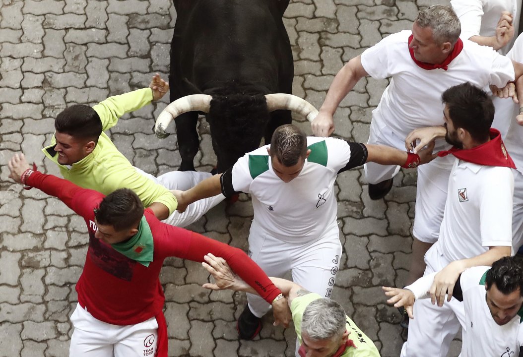 По традиция животните бяха пуснати в осем часа местно време. Шестте бика бяха от фермата Себада Гаго. Те са известни със свирепостта си. В по-голямата част от 850-метровата гонка обаче те бяха заобиколени от по-кротки животни.