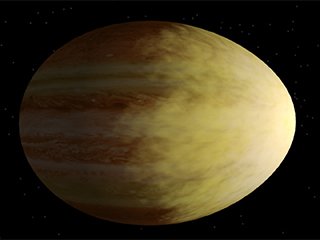 Както обяснява Синг, тези два факта предполагат, че звездата WASP-121 активно „оголва“ атмосферата на спътника си, карайки го да „набъбва“ под въздействието на своята топлина и светлина, а също и да се разтяга под действието на своето привличане. В резултат на това WASP-121b се превърна не само в най-горещата и екстремна, но и в най-причудливо изглеждащата планета.