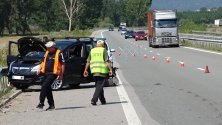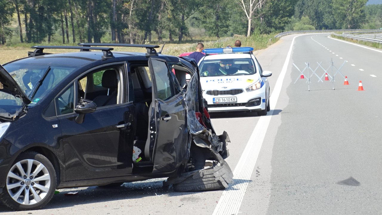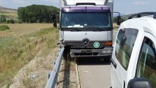Товарен автомобил ''Мерцедес'' блъсна спрял в аварийната лента лек автомобил ''Опел'', в който пътували две деца на 1 и 6 години.