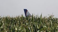 Кацането е осъществено успешно на около километър от пистата в царевична нива с изключени двигатели и без колесник.