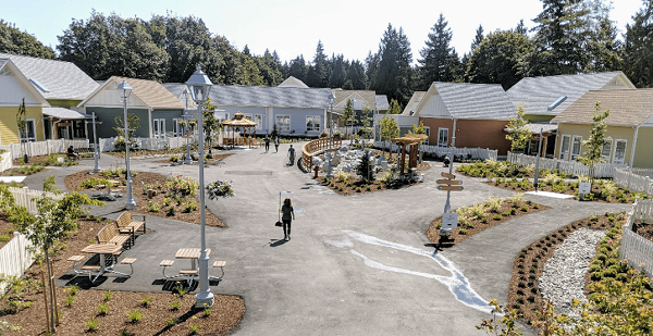 Със своя супермаркет, фризьорски салон, кафене и дори "ферма", снабдена с плевня и зеленчукова градинка, това място има всичко, което всеки би искал да открие в едно малко селце и именно това е идеята на неговите създатели. Само че това селце се намира в оградена около 3 хектара земя в Лангли, на около час от Ванкувър, и е конкретно създадено за хора с деменция и сходни когнитивни разстройства.
