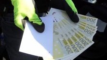 При извършените претърсвания са намерени и иззети общо 122 200 фалшиви евро в купюри от по 200 евро.